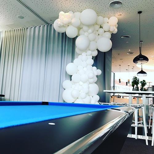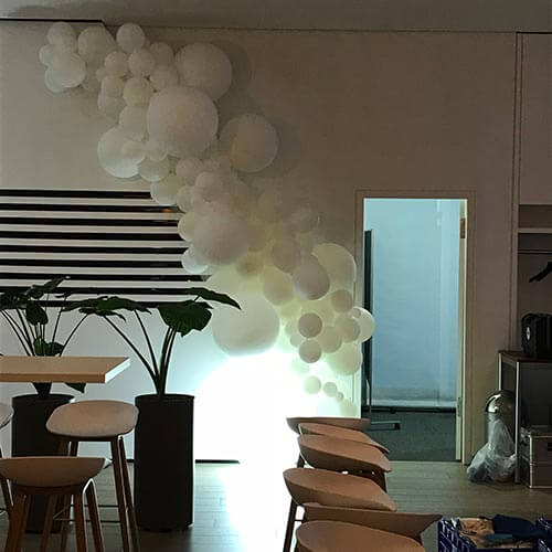 Für eine Inhouse Veranstaltung der Firma AUDI haben wir mehrere Ballonskulpturen erstellt. Herausforderung war es, eine Ballondekoration zu erschaffen, die mehrere Monate hält. Mit Latexballons ist das nicht ohne weiteres zu schaffen. In einem Rhythmus von 3 Wochen haben wir beschädigte oder unschöne Ballons ausgetauscht und so die Cloud immer frisch aussehen lassen.