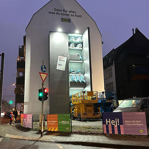 Wenn es um außergewöhnliche Wandgestaltungen geht ist Concrete Candy aus Dresden die erste Adresse. Wir freuen uns sehr, dass wir die Kollegen bei der Umsetzung dieses Murals für IKEA Deutschland unterstützen durften. Wann kann man schon mal 17 Haie in einem IKEA PAX Schrank verstecken. Und das mitten in Köln!