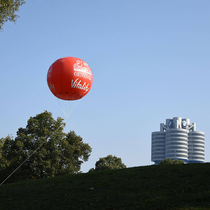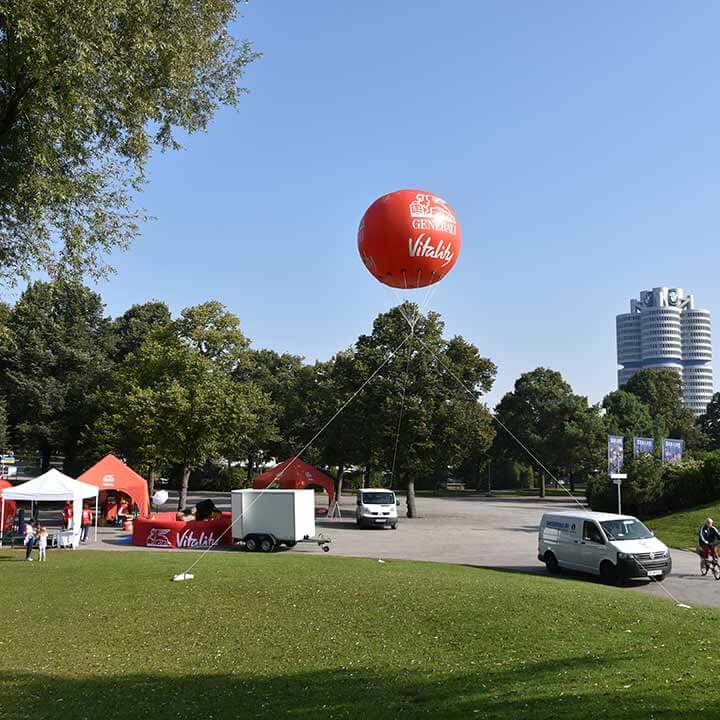 Fesselballons bestechen durch ihre Größe und den schnellen Auf- und Abbau. Mit minimalem Aufwand erreichen sie eine hohe Fernwirkung und sind von den Besuchern einer Veranstaltung schon von weitem zu sehen.