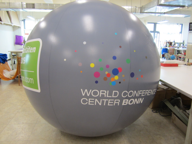 Messeballone von hochhinaus werden, je nach Ihren Bedürfnissen und Anforderungen, aus unterschiedlichen Materialien und in verschiedenen Größen angefertigt. Bei uns erhalten Sie ein hochwertiges Produkt, das genauestens auf Ihre Wünsche und Bedürfnisse zugeschnitten wurde. Als Hauptaugenmerk gilt dabei für uns, dass wir Ihr Logo, Ihre Farben und die entsprechende Botschaft so detailliert und hochwertig wie möglich auf die Ballonoberfläche aufbringen. Dafür stehen verschiedene Ballonbeschriftungstechniken zur Verfügung. Damit Sie einen ersten Eindruck von Ihrem Ballon für die Messe bekommen, präsentieren wir Ihnen vorab eine 3D-Darstellung zur Freigabe. Änderungswünsche setzen wir gerne um. Haben Sie keine konkreten Vorstellungen bezüglich Größe, Form und Gestaltung Ihres Messe-Werbeballons, so erhalten Sie bei uns bis zu drei Designvarianten kostenfrei. Mit hochhinaus sind Sie auch bei kurzfristigen Events gewappnet. Wir bedrucken und liefern Ihren Messeballon bei Expressanfertigung in unter 14 Tagen!