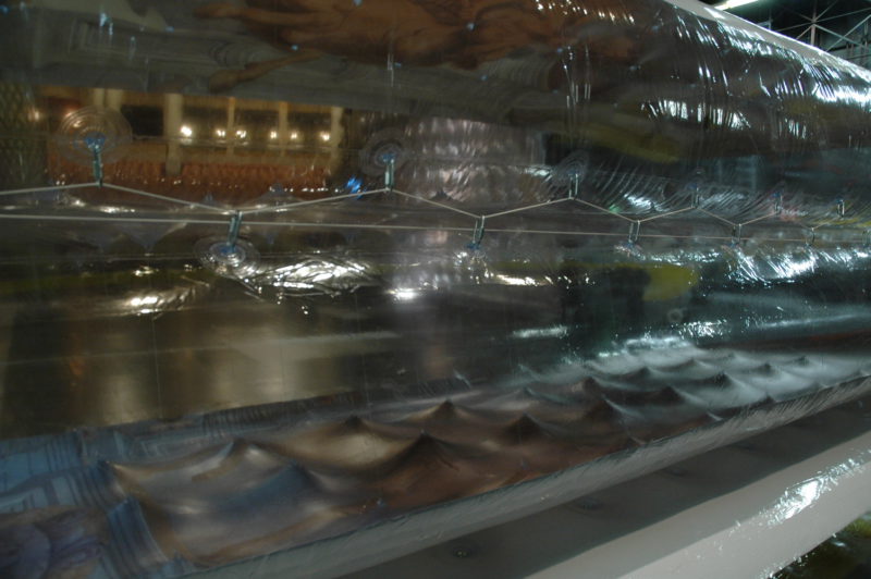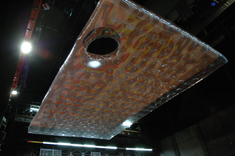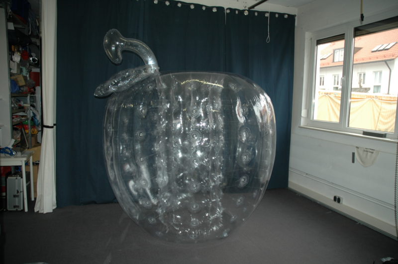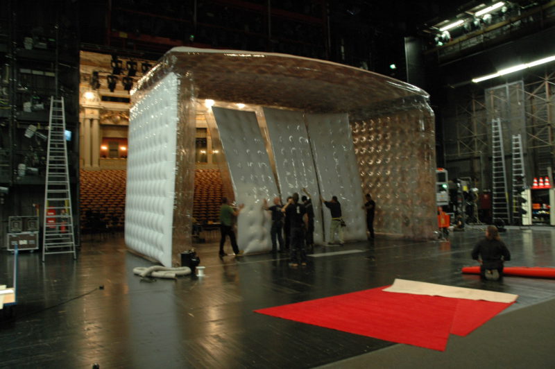 In diesem Bereich arbeiten wir oft mit Künstlern und Bühnenbildnern zusammen, um Ihre Idee von einem Objekt so perfekt wie möglich umzusetzen. Wir verwenden für diese luftbefüllten Sonderformen unterschiedliche Materialien. So unterschiedlich die Einsatzgebiete, so verschieden sind die Ansprüche an das Material und die Verarbeitung. Manchmal sollen die aufblasbaren Objekte sehr leicht und filigran sein um z.B. mit möglichst wenig Seilen und fast unsichtbar von der Decke abgehängt werden zu können. In anderen Fällen ist gerade das Gegenteil wichtig. Die Objekte müssen robust und stabil sein damit z.B. Schauspieler mit Stiefeln auf einer aufblasbaren Konstruktion herumspringen können, ohne diese zu beschädigen.