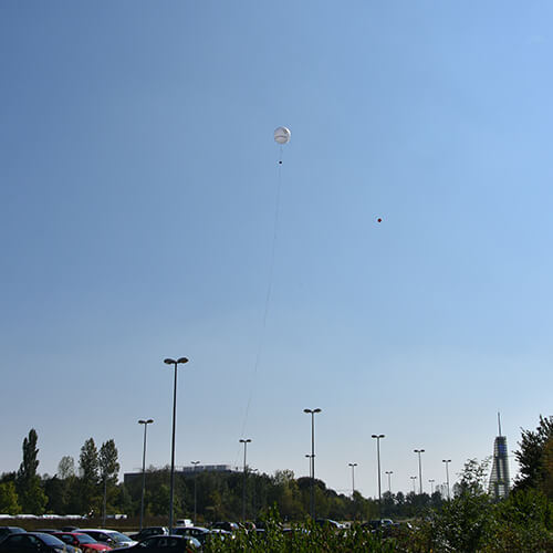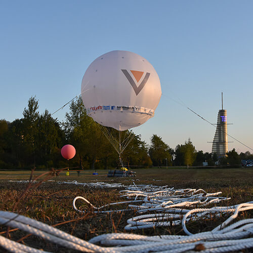 Im Zuge eines Teilsponsorings haben wir die Studenten der TU München / Fachbereich Raumfahrttechnik mit einem 5,00 Meter Fesselballon unterstützt. Der Fesselballon wurde auf eine Höhe von 120 Meter aufgelassen. An einem speziellen Seilsystem konnten die selbstgebauten Fahrstühle an diesem Seil hochfahren. Nicht nur die Geschwindigkeit sondern auch die Energieeffizienz waren wichtige Kriterien für die Juroren der Veranstaltung.