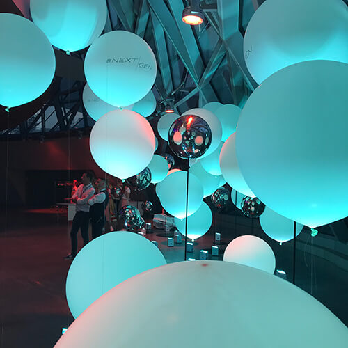 NextGen, BMW präsentierte die neue Generation Elektrofahrzeuge. Da haben wir unsere Balloninstallation natürlich auch mit Akku-LEDs beleuchtet.